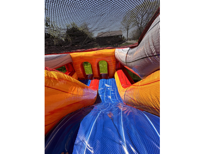 Introducing the latest sensation in outdoor fun and competitive entertainment – our brand-new, unparalleled 70ft inflatable obstacle course! This awe-inspiring 18' high warp wall that challenges participants right from the start. Imagine the thrill as you and your friends or competitors scramble to conquer this towering barrier. Just beyond that lies a series of obstacles designed to test agility, speed, and strategy. Dive into the tunnel, dash over another hurdle, weave through barriers that demand quick thinking and swift movements. Climbers must muster their strength, skill, and determination to reach the rock wall finale and slide down into victory. This unique inflatable obstacle course will fosters friendly competition, and guarantees an unforgettable day. Whether for a party, team-building event, or just a weekend of fun, our 70ft inflatable obstacle course promises an experience like no other. Great for all ages including adults.