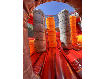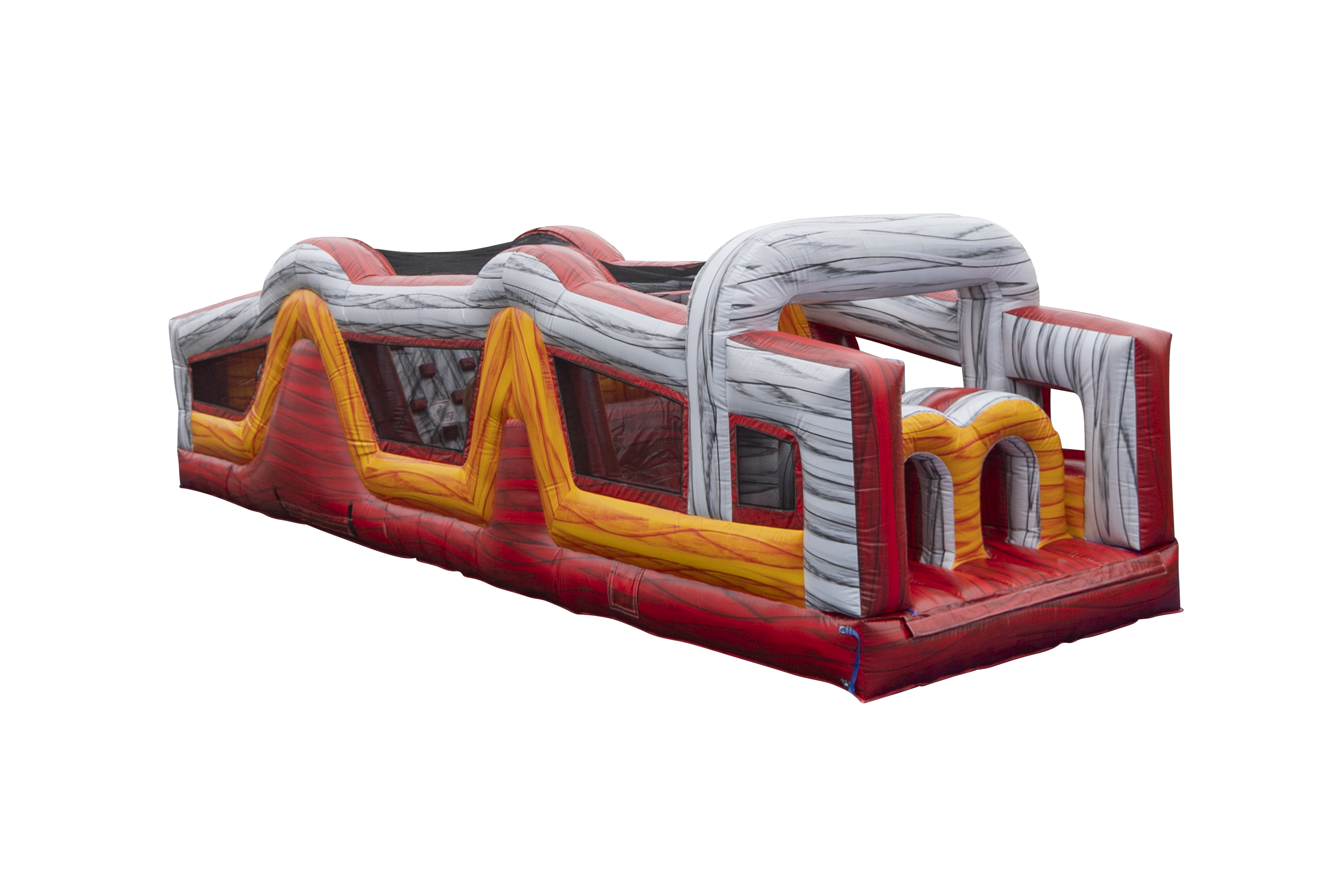 Get the Newest and latest design obstacle. This longer 35' run allows for so much more adventure. Kids can test their agility, speed with 3 slides!. The course is ingeniously laid out to have racers weave their way over and under barriers, squeeze through tunnels, push through obstacles. Keep them swiftly thinking and moving to reach the rock wall and final slide. Each obstacle is carefully crafted to ensure a blend of excitement and safety, making it perfect for competitors of all ages.